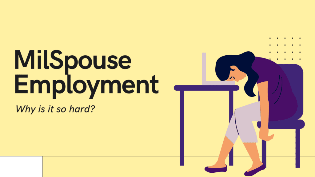 Year after year, military spouse employment is a top concern. Even with all the resources available, the spouse unemployment rate is four to six times the national average, and many barriers keep military spouses from finding their place in the job world. The National Military Spouse Network reported in their 2021 Roadmap to Employment Stability for Military Spouses that “data collected since the COVID-19 pandemic indicate unemployment rates may have increased to 30 – 35%.”