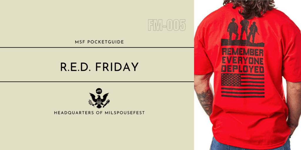 Military spouses, family members, and organizations can support the R.E.D. Friday by not only wearing red, but by volunteering or donating to military and veterans support organizations:
